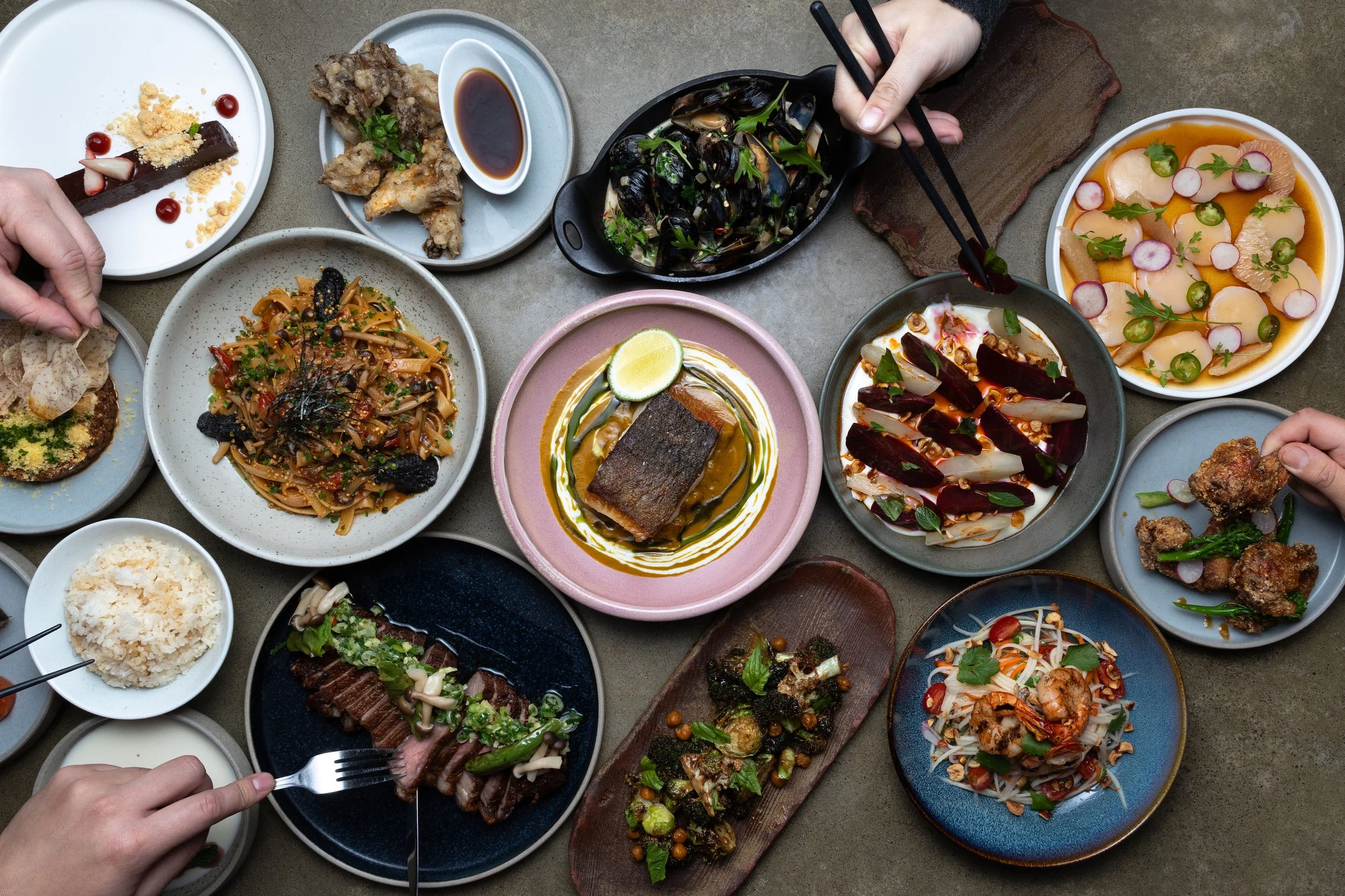 Try our feature dishes - Fanny Bay Sunseeker fried oysters with miso espuma and furikake; Bison carpaccio with black garlic emulsion, citrus kosho and quinoa chives