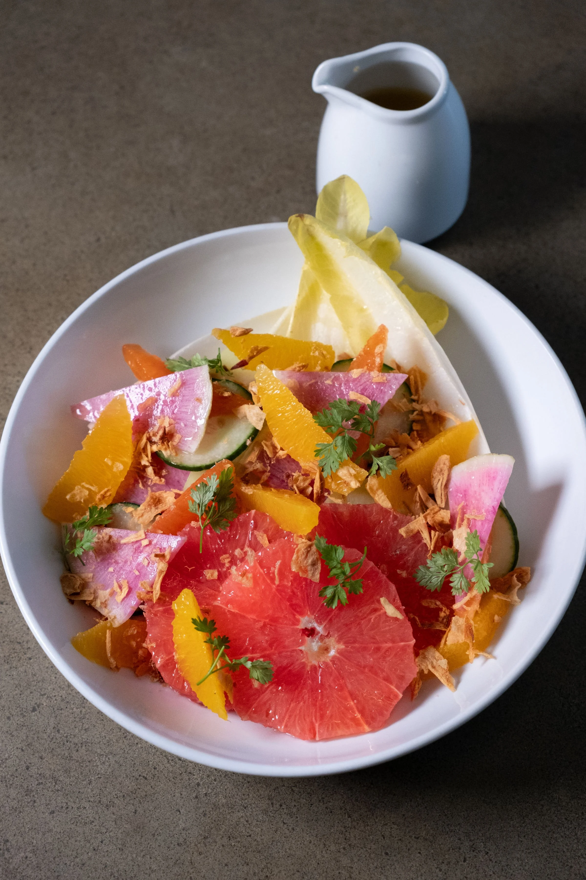 Spring Green Salad - spring mix green, spring vegetables, chardonay yuzu dressing, hazelnuts
